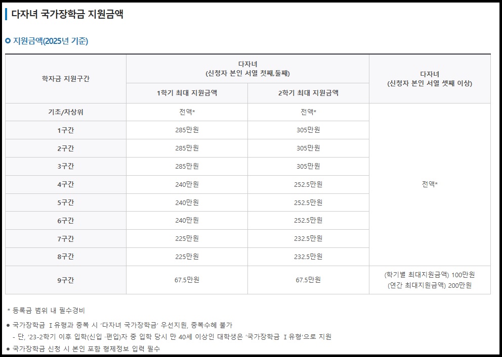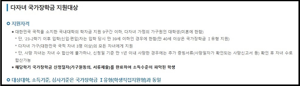 ※ 다자녀 국가장학금 : 대상대학, 소득기준, 심사기준은 국가장학금 Ⅰ유형(학생직접지원형)과 동일