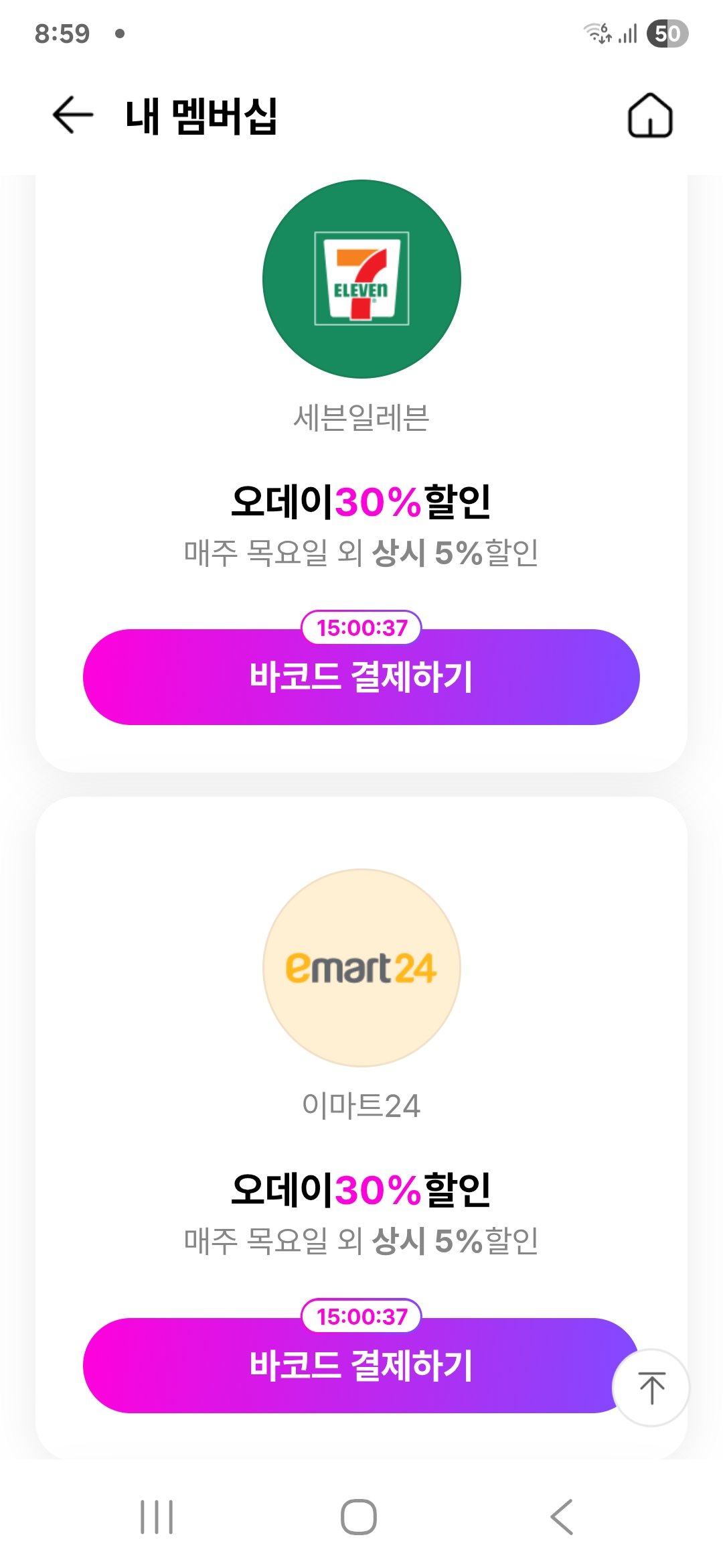 매주 목요일 OK캐쉬백 오데이! 오늘 50% 할인 대란이 시작됩니다.