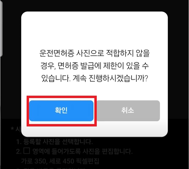 **‘사진 등록’**을 눌러 준비한 여권용 사진(JPG 3.5 cm × 4.5 cm, 100 KB 이상 권장)을 업로드합니다. 규격 미달 시 발급이 지연될 수 있으니 주의하세요.