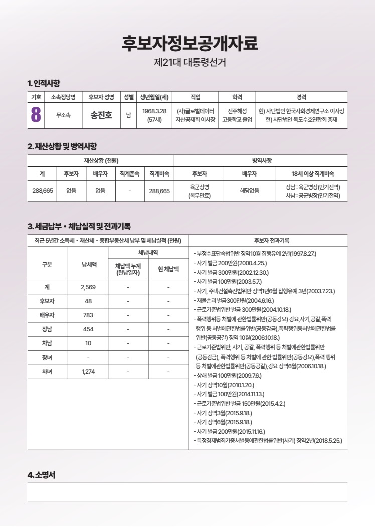 기호 8번. 송진호 (무소속) 10대 공약 세부내용 확인하기