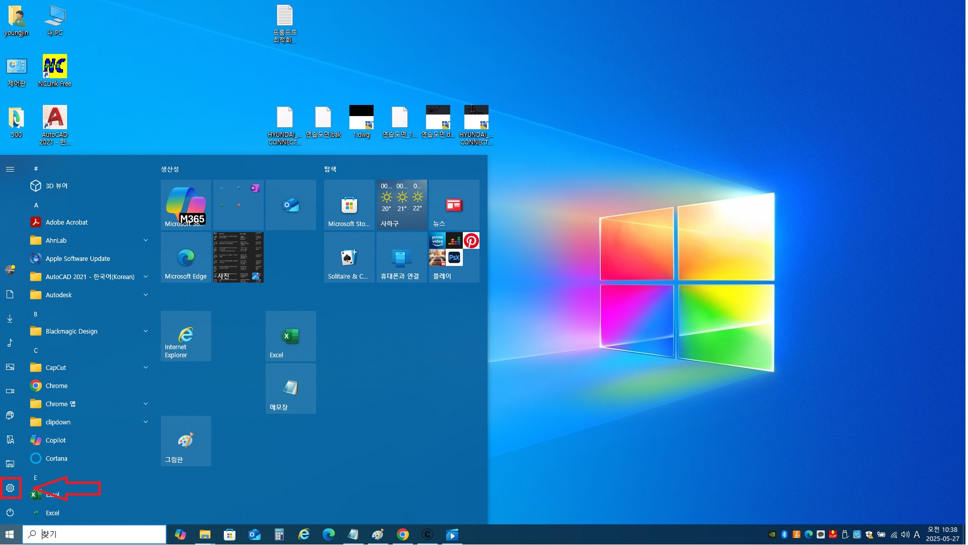 왼쪽 하단 [윈도우 아이콘] 클릭