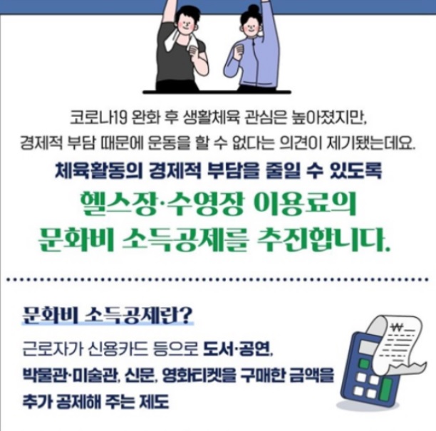 이 제도는 국민의 운동 참여에 대한 경제적 부담을 낮추고 건강한 생활을 장려하기 위한 목적으로, 비교적 소득이 높지 않은 근로자에게 실질적인 혜택이 돌아가도록 설계되었습니다.