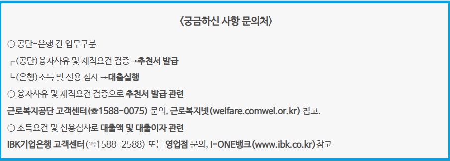 • 융자 한도: 1인당 최대 500만 원까지 가능합니다. 다만, 중위소득의 3분의 2(월 3,350,235원) 이하인 저소득 근로자는 최대 1,000만 원까지 한도가 상향됩니다.