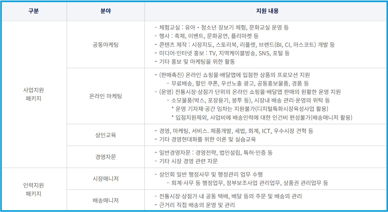 문의처 : 시장경영패키지지원 사업 담당자 (042-363-7637, 7638, 7639)