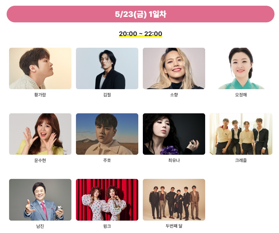 행사는 5월 23일부터 25일까지 사흘간 목포종합경기장 일원에서 진행합니다. 첫날에는 ‘목포노래큰잔치’와 함께 이난영·김시스터즈를 오마주한 개막 공연을 선보였습니다. LED 터치 퍼포먼스와 국내 최정상 가수가 총출동한 CROSS OVER 공연도 준비했습니다. 남진, 오정해, 김필, 소향 등 남녀노소가 함께 호흡할 수 있는 무대를 구성했습니다. 관객은 추억을 회상하며 신세대와 소통했습니다.