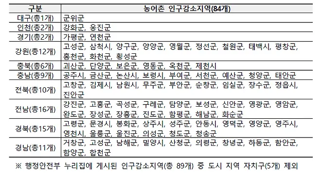 더 나아가, 행정구역 전체가 아닌 읍·면 단위로 보면 인구 소멸 위기에 처한 ‘도농복합지역’ 역시 정책의 사각지대에 놓일 수 있다는 우려도 나옵니다. 도시적 성격이 강한 동(洞) 지역 때문에 전체 인구는 유지되는 것처럼 보여도, 농촌 지역은 심각한 인구 감소를 겪고 있기 때문입니다. 이처럼 세밀한 기준 없이 '광역시의 구'라는 잣대만으로 지원 여부를 결정한 것은 더 큰 형평성 문제를 낳을 수 있습니다.