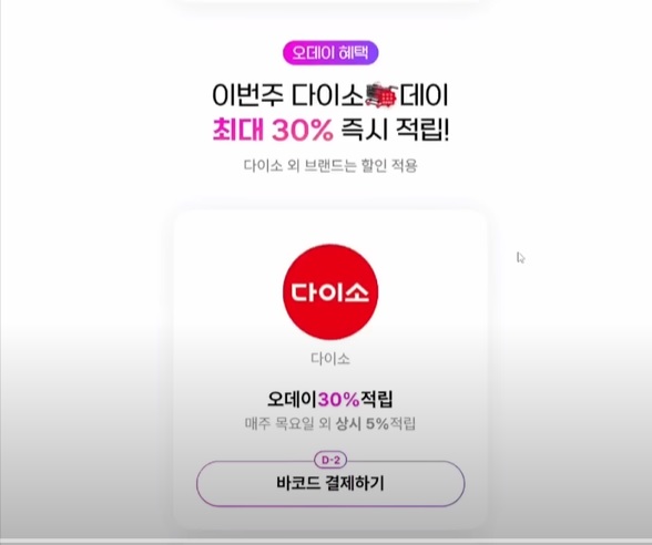 오데이 혜택 당일인 5월 29일 다이소 결제 시 사용 가능